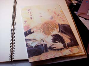今回いつもと表紙の紙を変えてみたのですが、紙が変わると印刷の仕上がりも変わるのでなかなか難しいものでございます。。微妙にきらきらしてて素敵な紙なのですが、かなり赤味の強い印刷に仕上がってしまうようなので・・・。また使用してみたい紙なので、次回はそのあたりを意識して着色しようと思います。