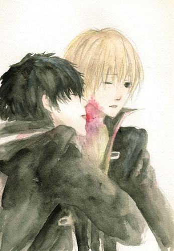 オンリに出すコピ本の原稿をひたすら塗り塗りしている日々でございます。3枚目を塗り終えましたところで、ちょっと息抜きに、ひじおき絵に手を出したわけでございます↑。息抜き、イエス!