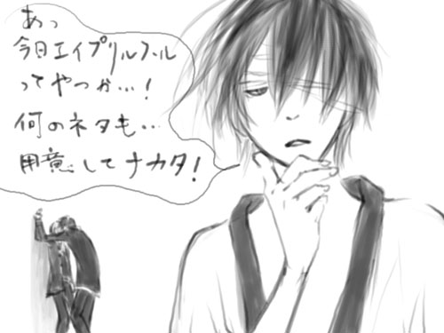 高杉とその背後でいちゃついてらっしゃる土沖という脈絡のないらくがきはさておき、エイプリールフゥールという企画(?)を見事にスルーする鈍すぎるサイトですみません。。。管理人のヘタレっぷりが反映されているヘタレサイトでごめんなさいー!(逃亡)