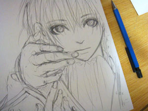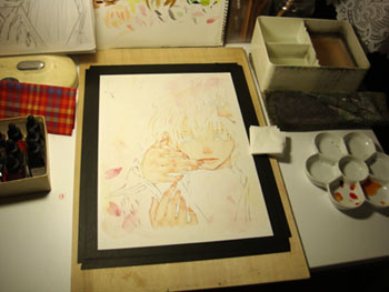 先日の下書きではいなかった土方の横顔を、ペン入れ寸前にちょこっと描き足しまして、そして着色中。。。背景と肌を塗りました。とりあえず今日はこれで寝ます・・・Yo!ヘイヨー!(どんなテンションですか)