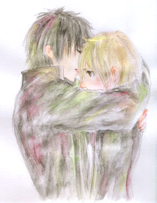 銀魂絵&リボーン絵、追加いたしました。リボーン絵は以前グッズで使用したものです。銀魂絵は、土沖絵を二枚でございます。一枚は新刊の表紙でございます。もう一枚は、着色中だった土沖絵を大江戸フレパから帰ってからもくもくと塗り終えましたので、乾いてからあぷいたしました。力強くではなく、やさしい包み込むような抱擁で。。。ふんわり。ふんわりんご。どうやら私、『り』で終わる言葉に『りんご』を付け足すのが好きなことに最近気付きました。(どうでもいいですよ!)・・・す、すみません!