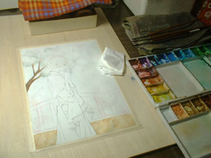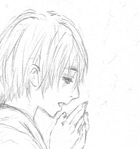 きのうですが、沖田絵を追加いたしました。背景に描き込んだ雪や沖田の吐息がスキャンしたらけっこうトんでしまったのがショッキングですが、気にしません。(気にしないのか!) 明日はセントヴァレンタインデェなので、それに因んだひじおき漫画でも描きたかったのですが・・・ちょっと時間がありませんでした(汗)。ネタもうかんでいたのでショッキングですが、気にしません。(気にしないのかー!)